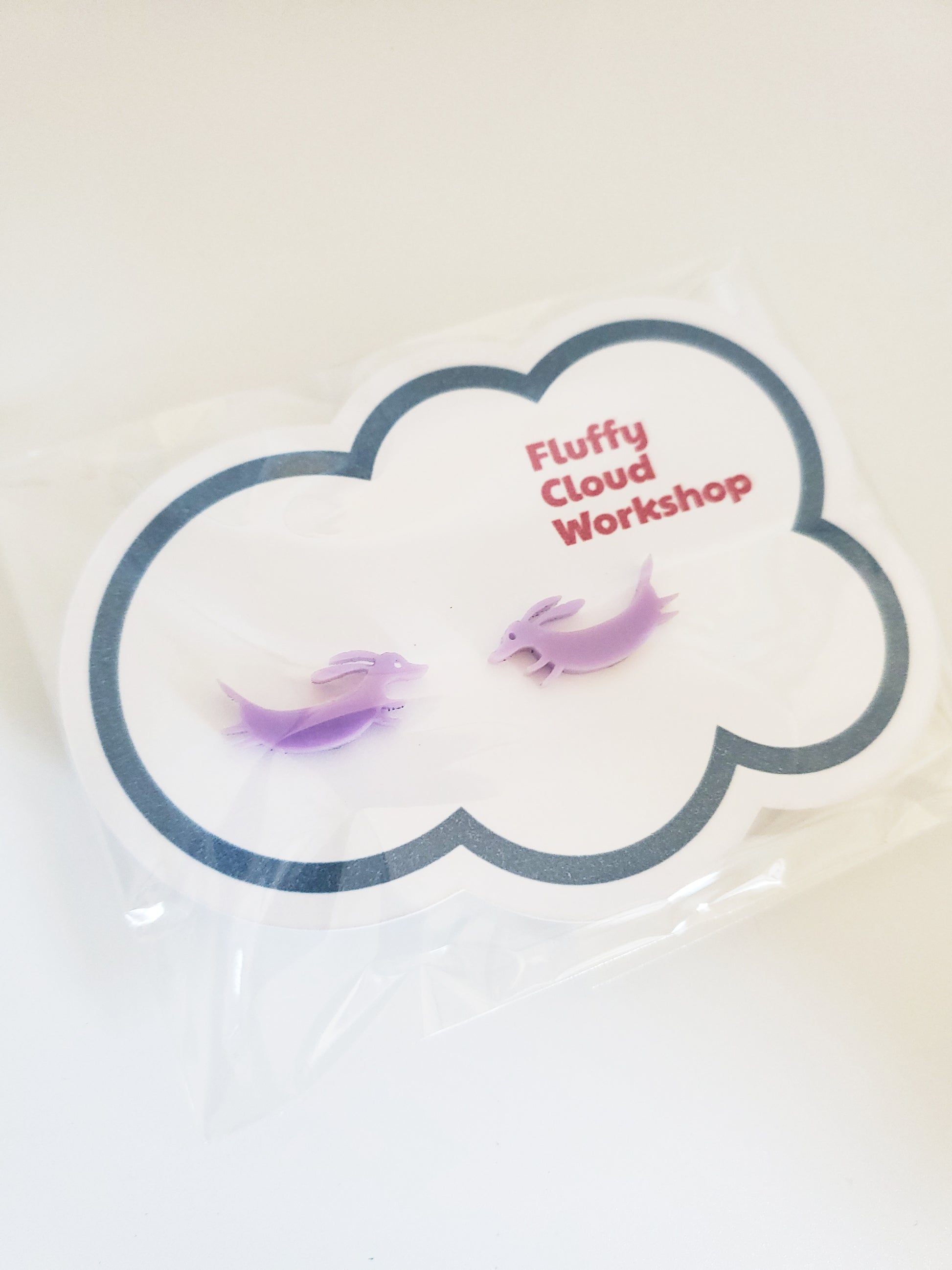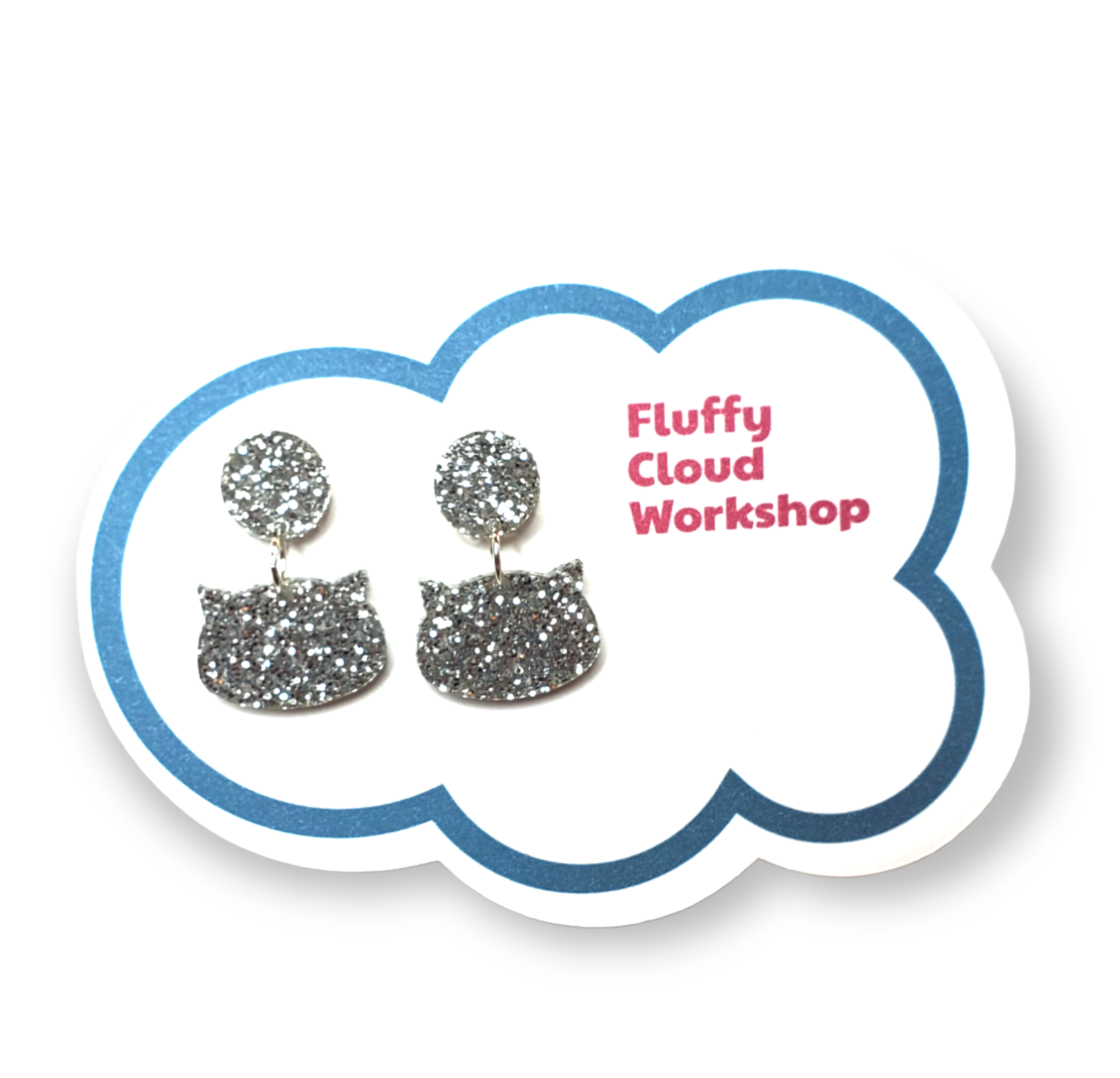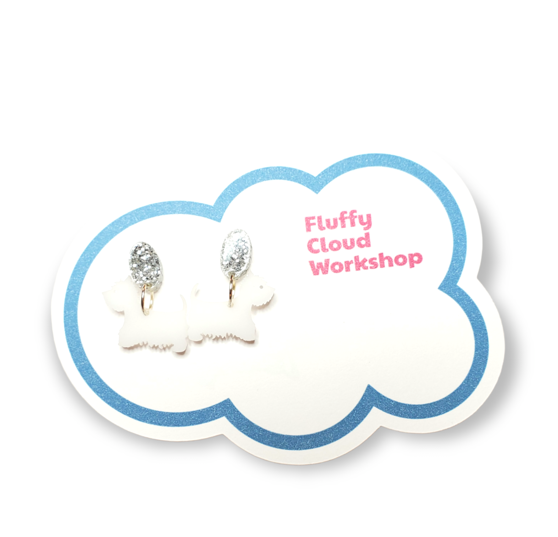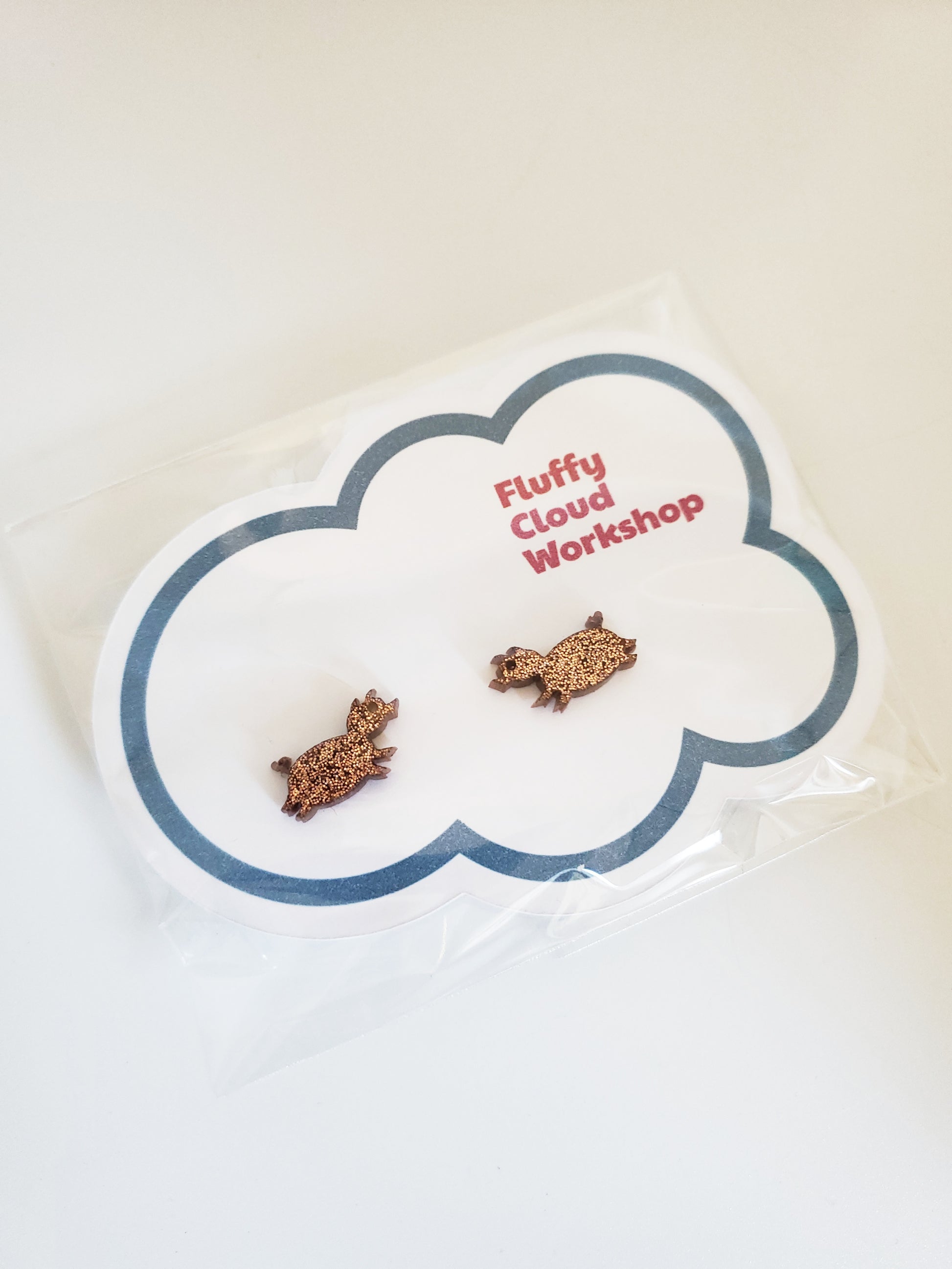 These little stud and dangle earrings are just adorable! Colourful (and quite a few glittery) resin animals are mounted on stainless steel studs. Roughly 0.5 inches wide.