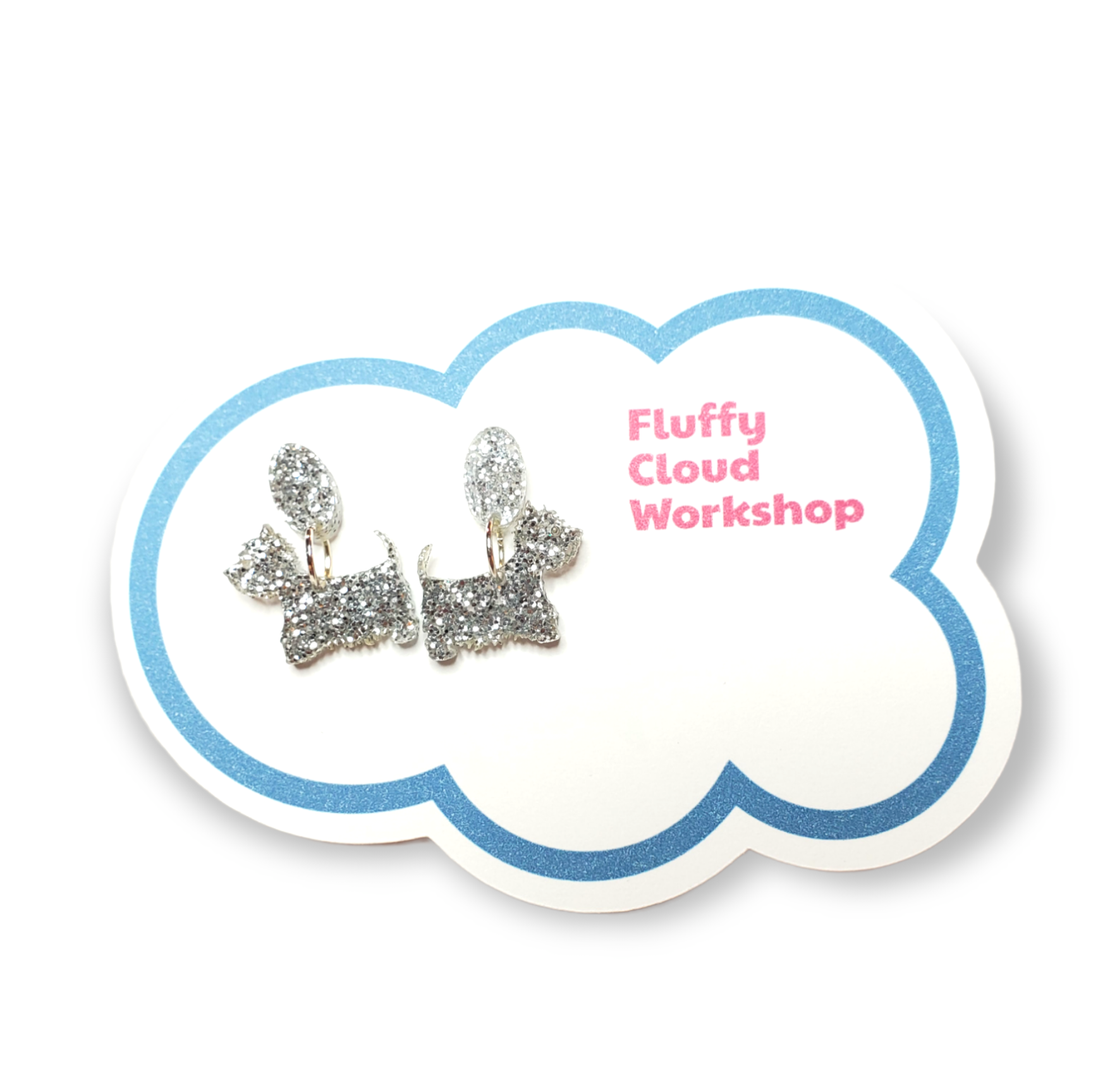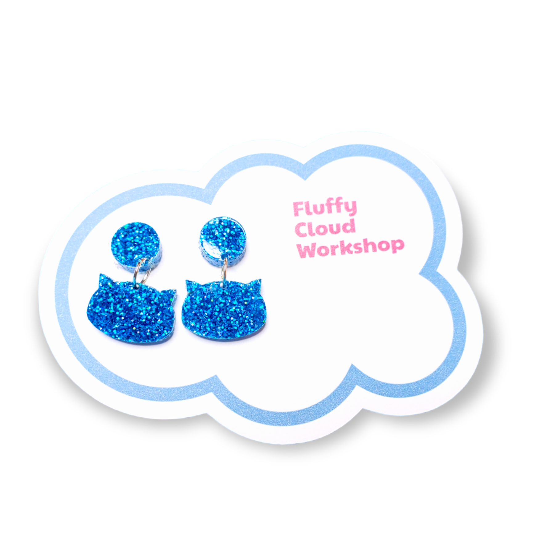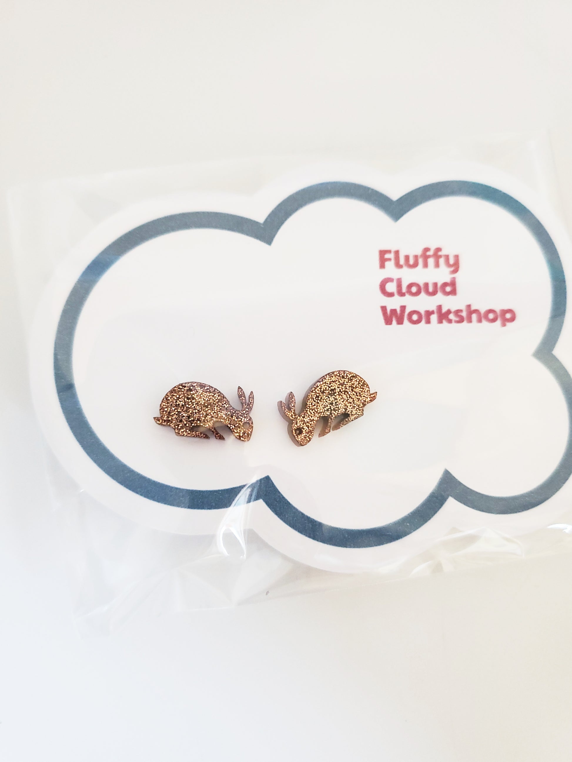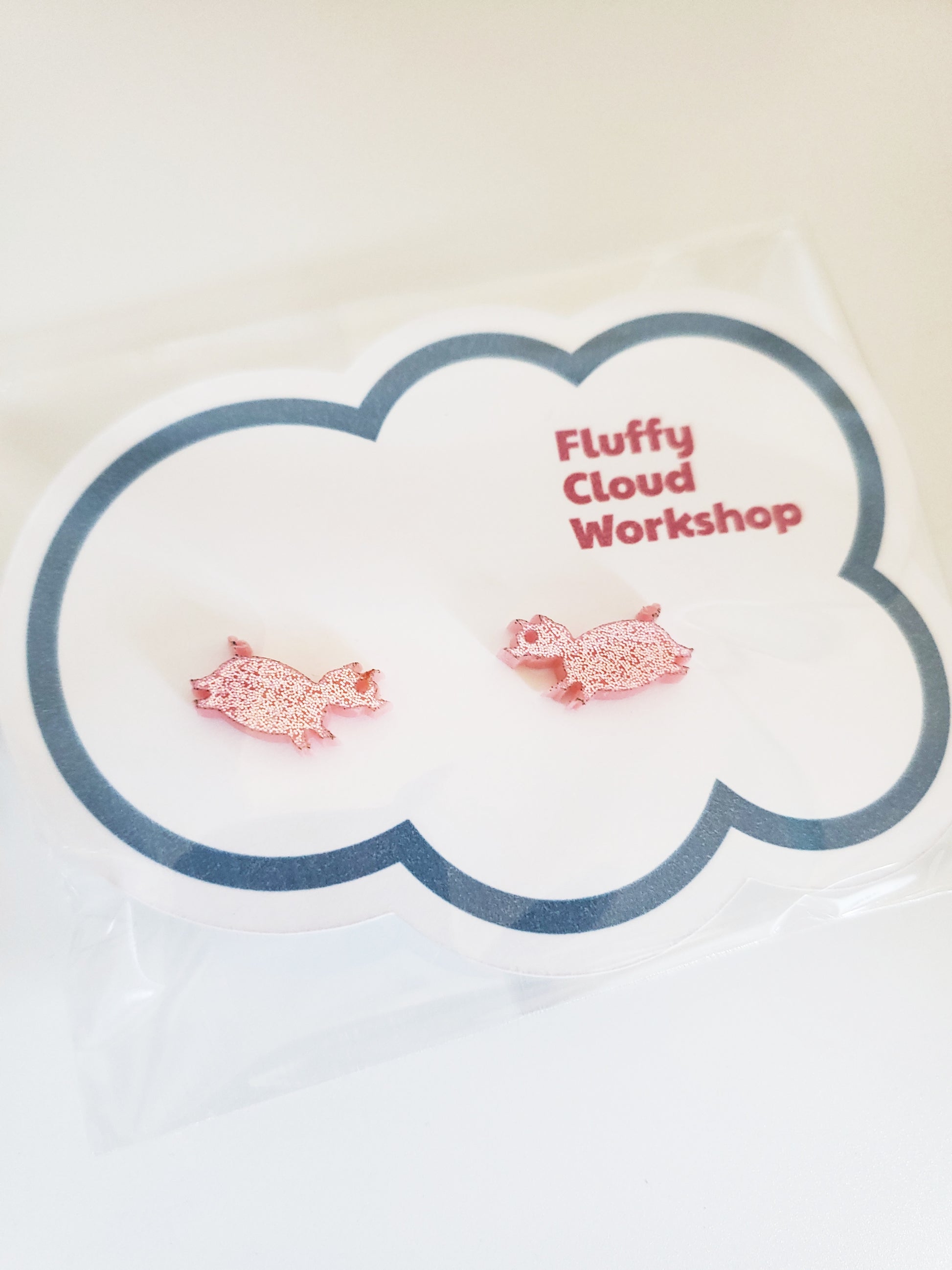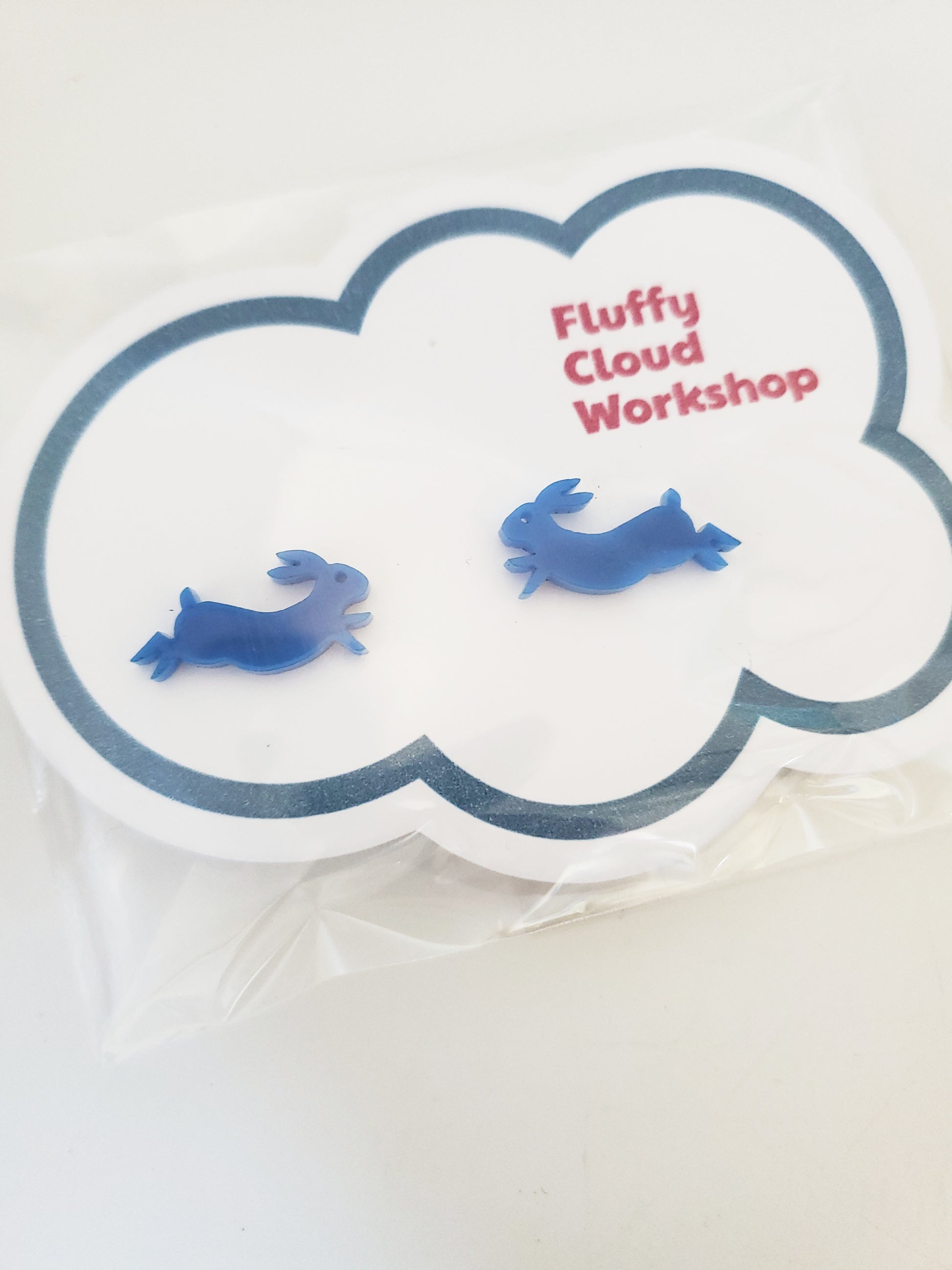 These little stud and dangle earrings are just adorable! Colourful (and quite a few glittery) resin animals are mounted on stainless steel studs. Roughly 0.5 inches wide.