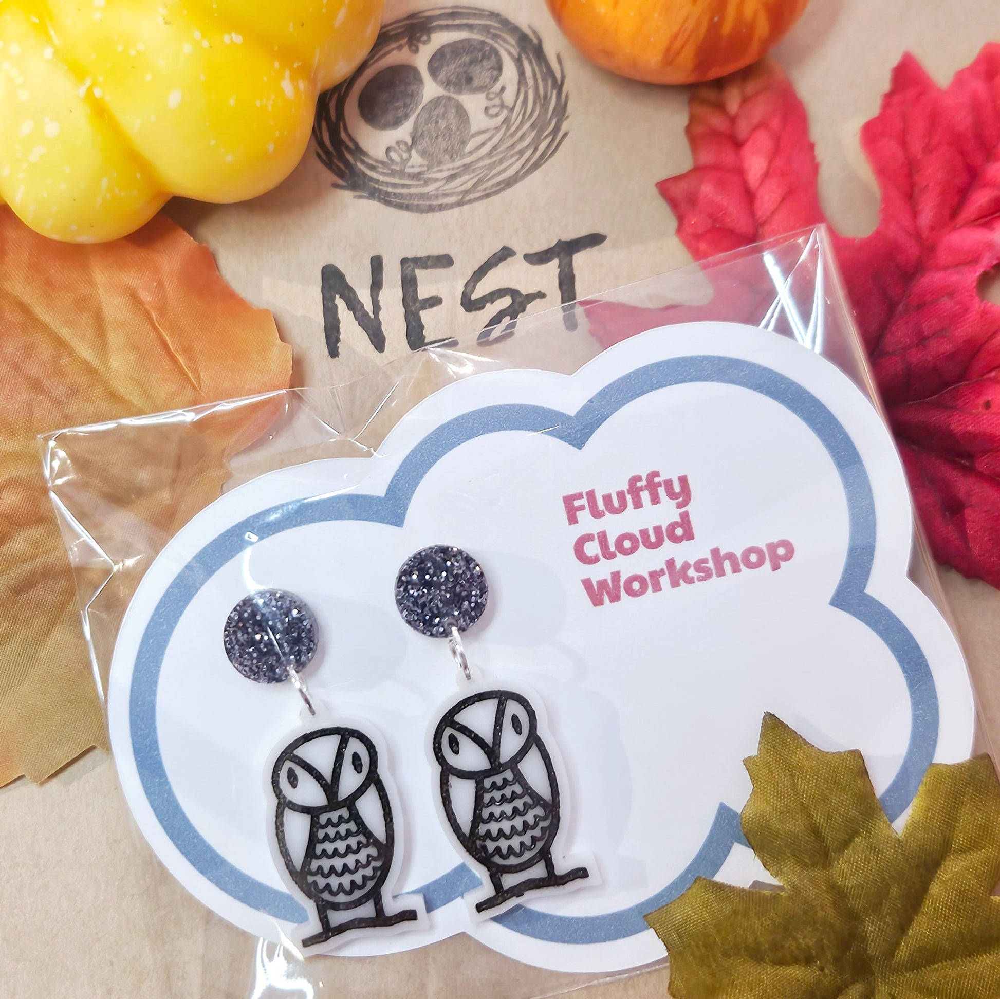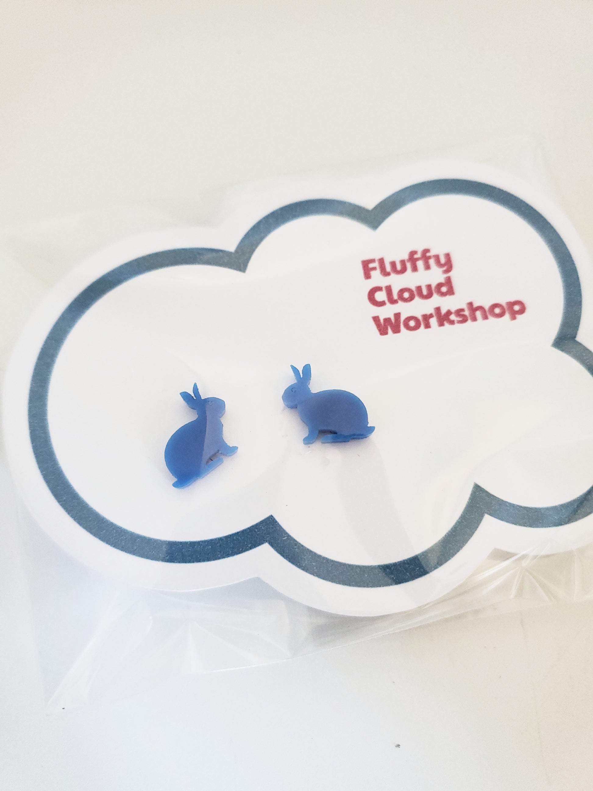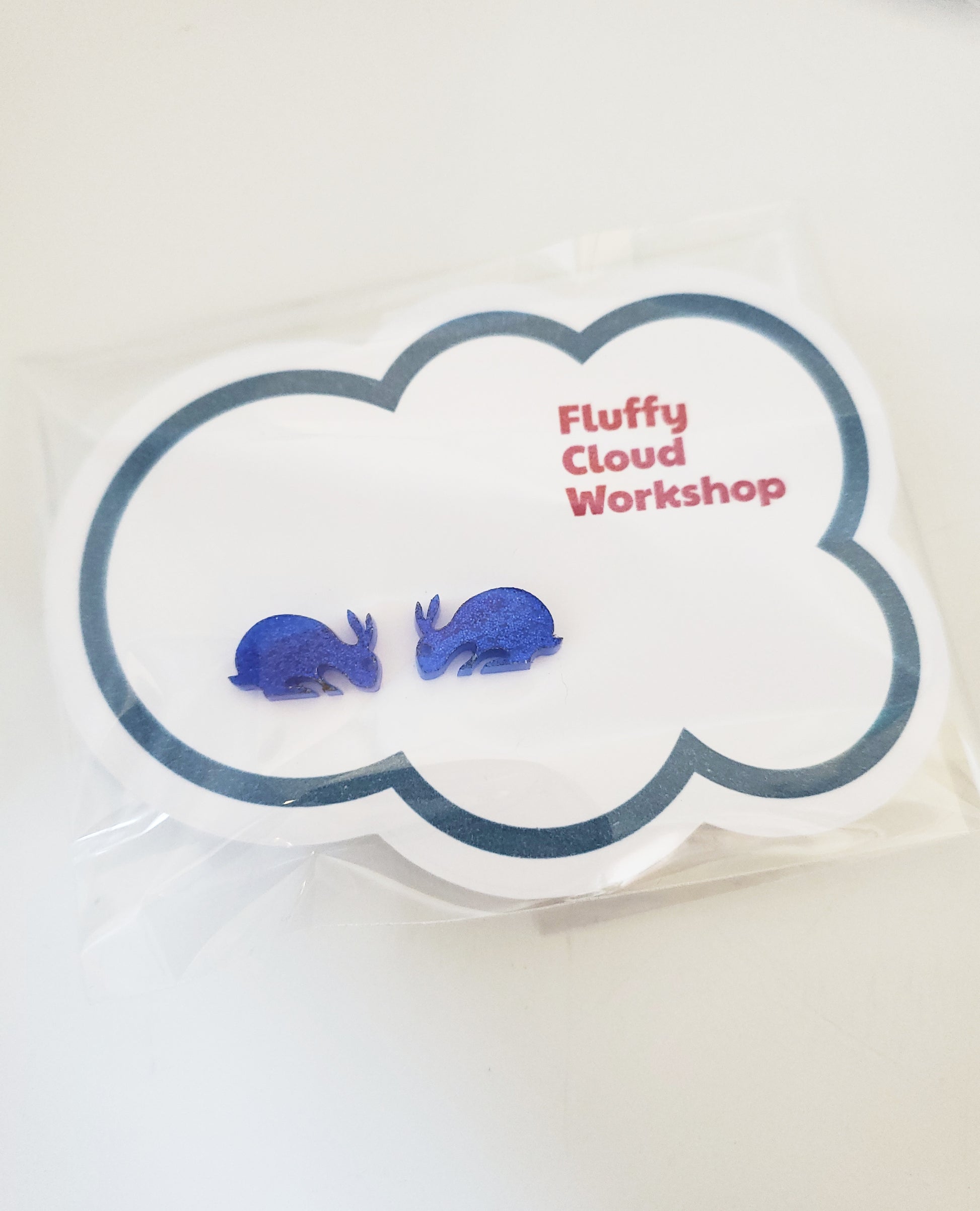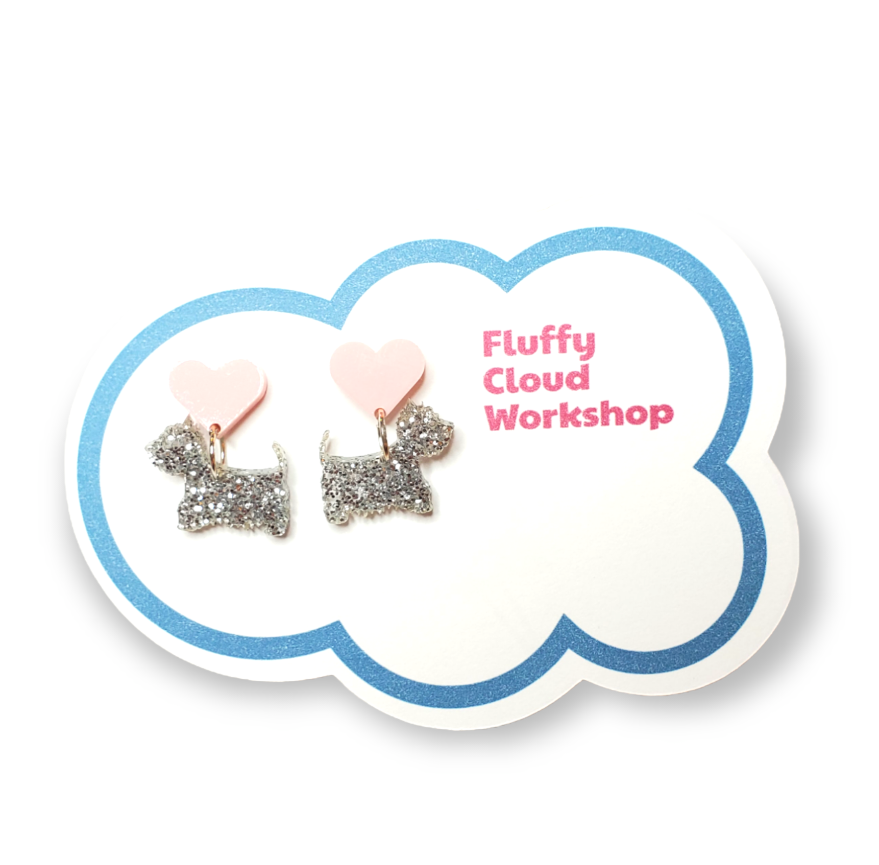 These little stud and dangle earrings are just adorable! Colourful (and quite a few glittery) resin animals are mounted on stainless steel studs. Roughly 0.5 inches wide.