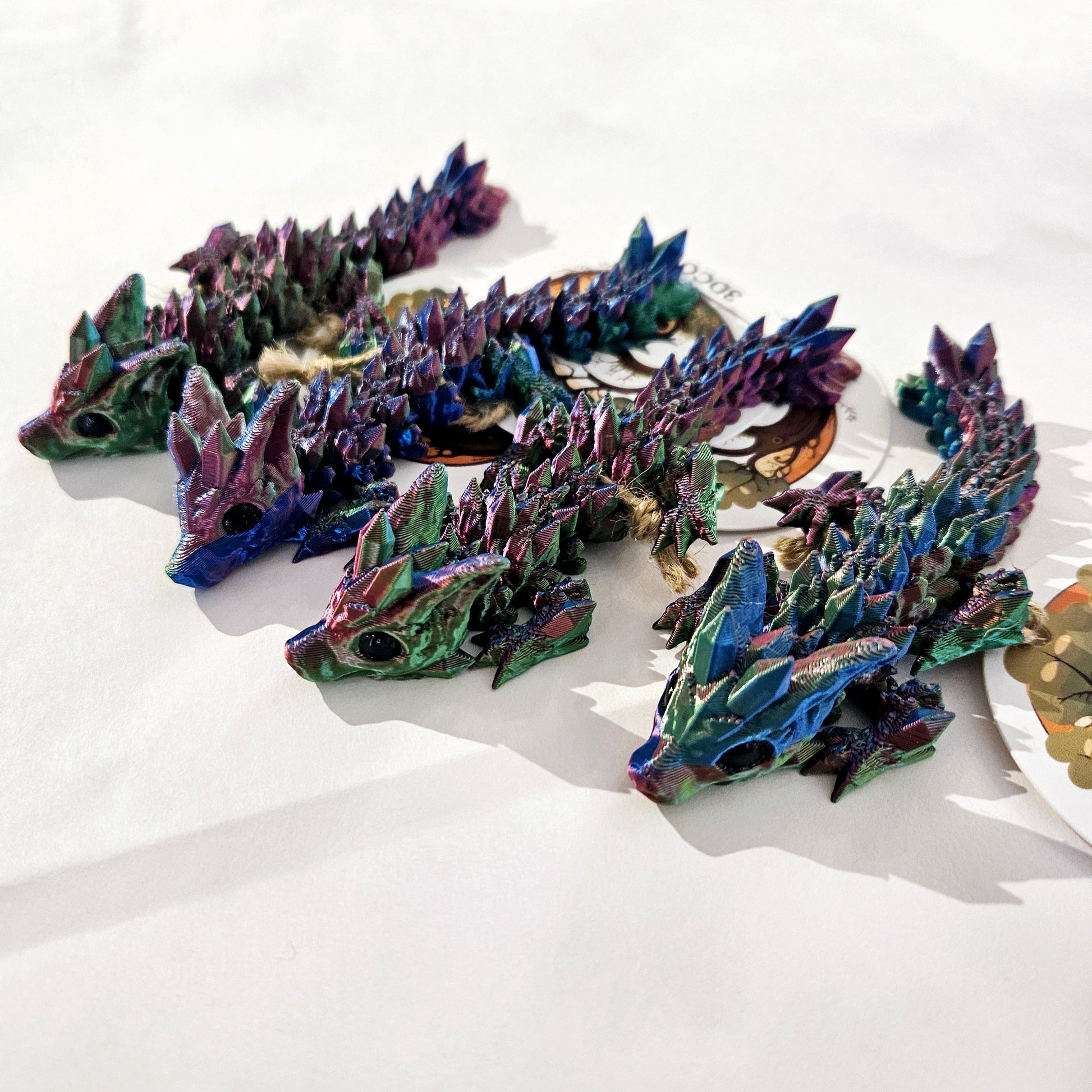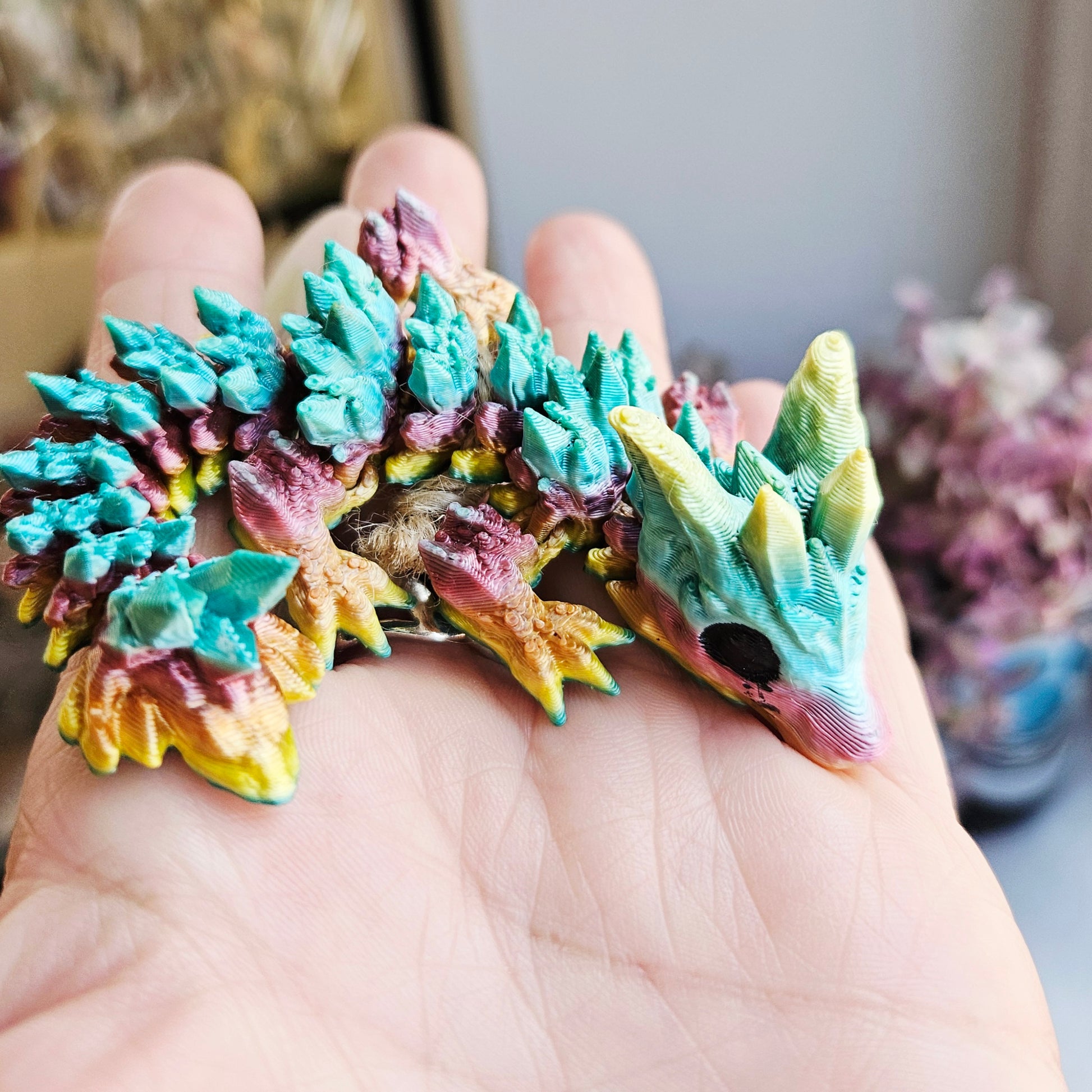 Fully articulated dragons in magical colours! These fun friends are not just for kids - they can hang out anywhere with you and they bring a touch of wonder everywhere they go.