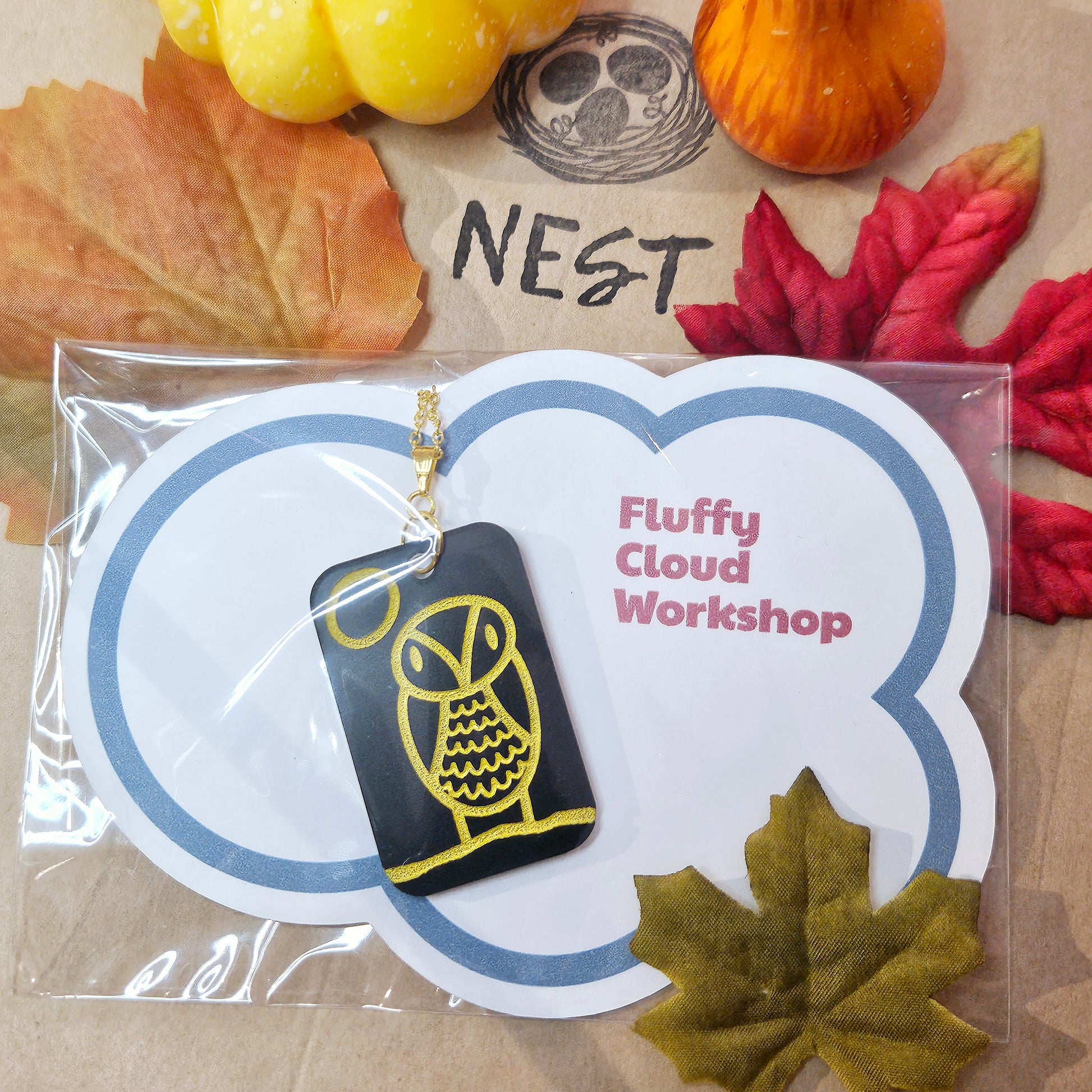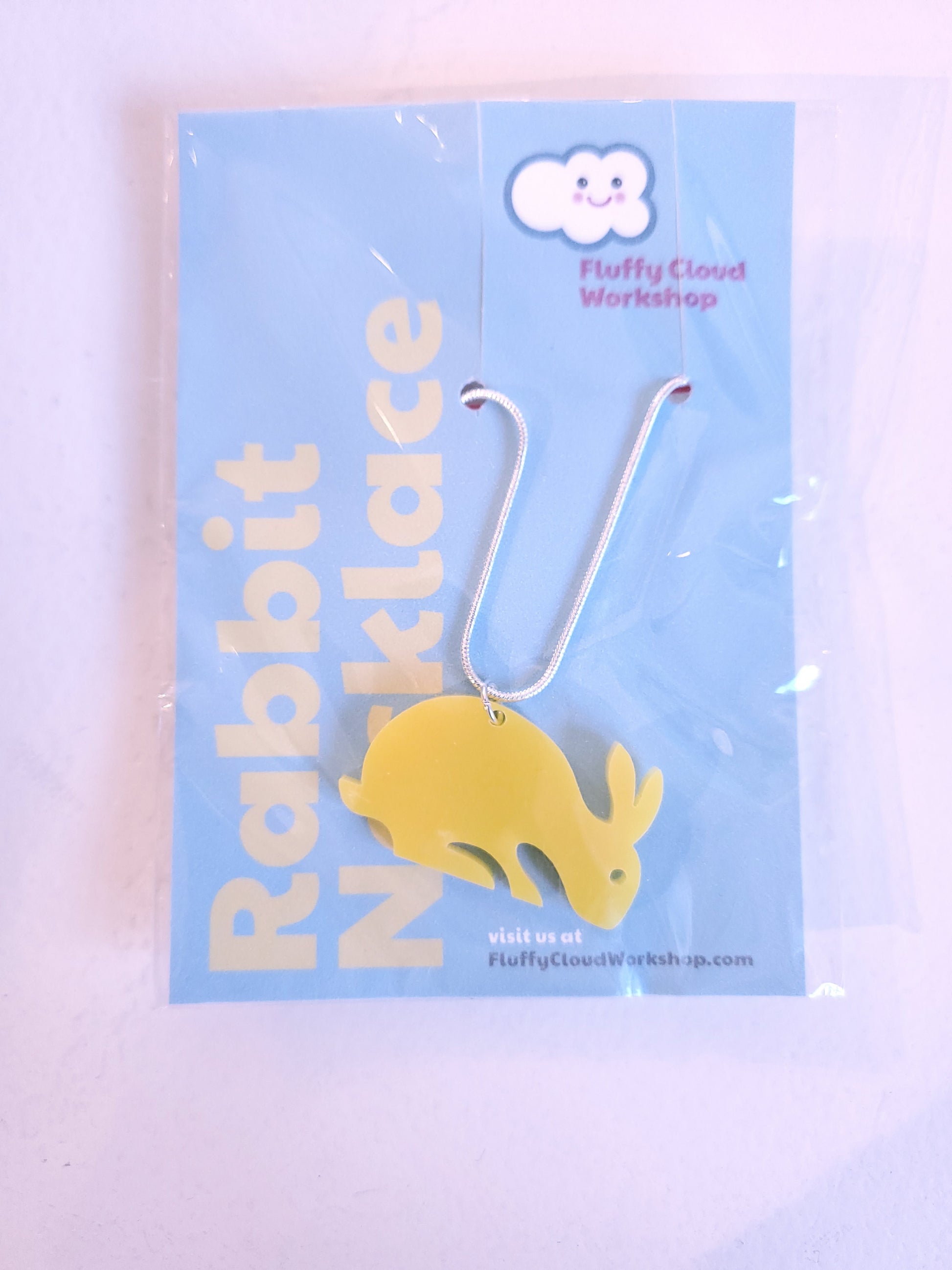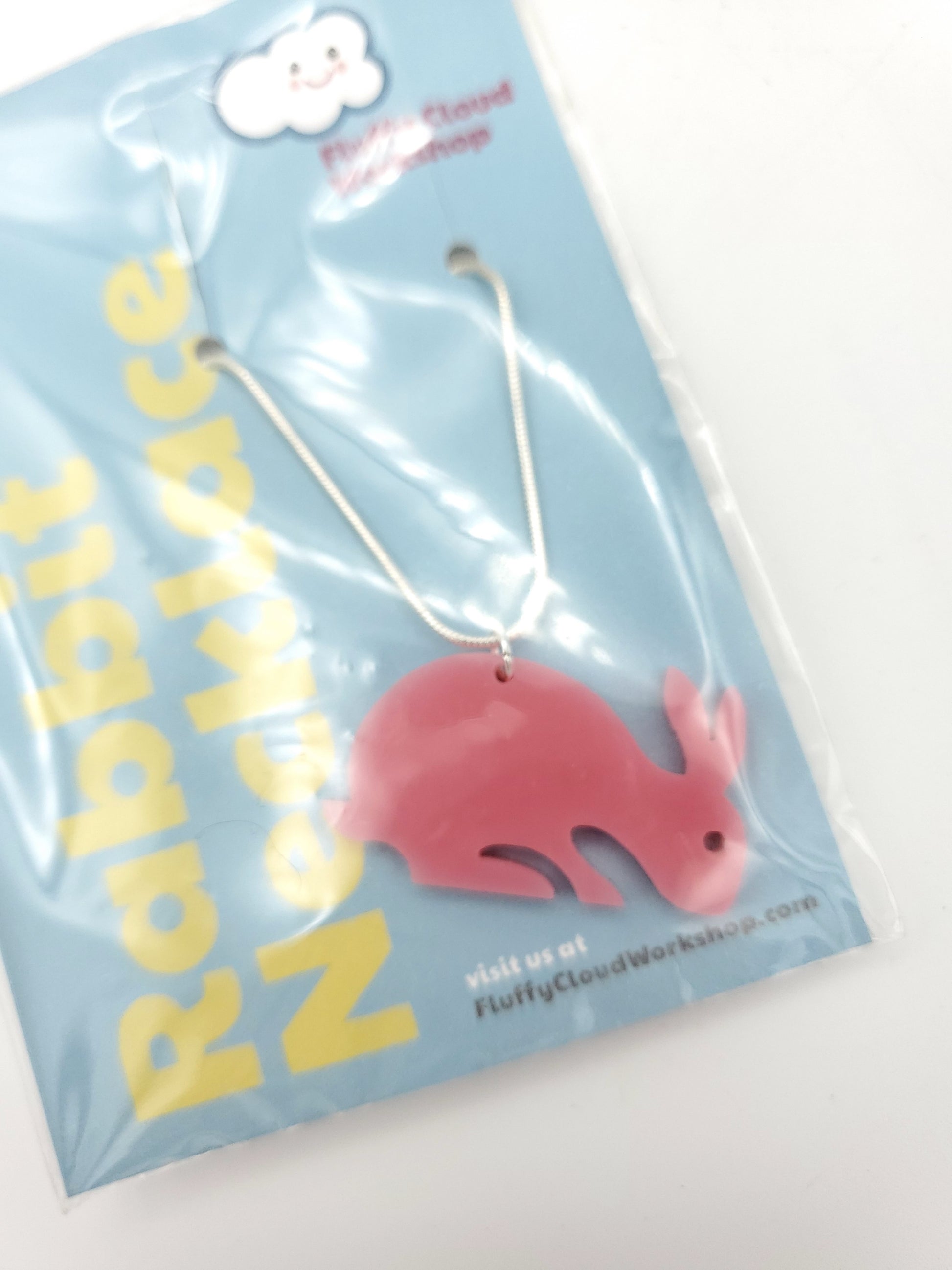 Colourful bunnies strike all kinds of poses in these adorable necklaces and earrings! On that owl! Whoooooo! Acrylic figures on stainless steel findings.