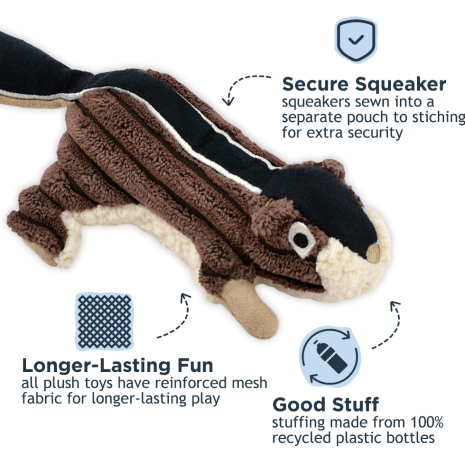 Throw, squeak, snuggle, repeat — this plush toy is made with you and your pup in mind. Fashioned for endless interactive play and cuddles, our plushes make for paw-fect comforting companions. In addition, our squeakers are sewn into a separate pouch and stitched into the seam for extra protection.
