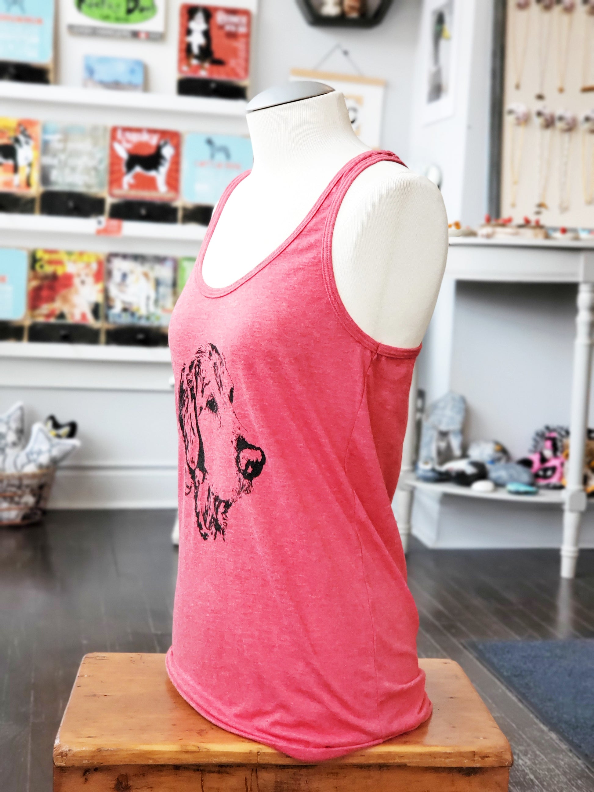 Show your puppy love with these soft and fun tank tops! Each features a dog breed screenprinted onto a cotton/polyester blend tank. No longer in production - get them while they last! Ladies' cut and tend to fit on the smaller side.
